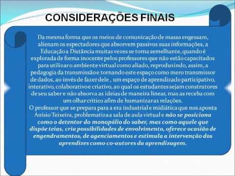 O vídeo trata-se de Trabalho apresentado por colegas à disciplina Educação a Distância. Adicionado em 25/02/2013